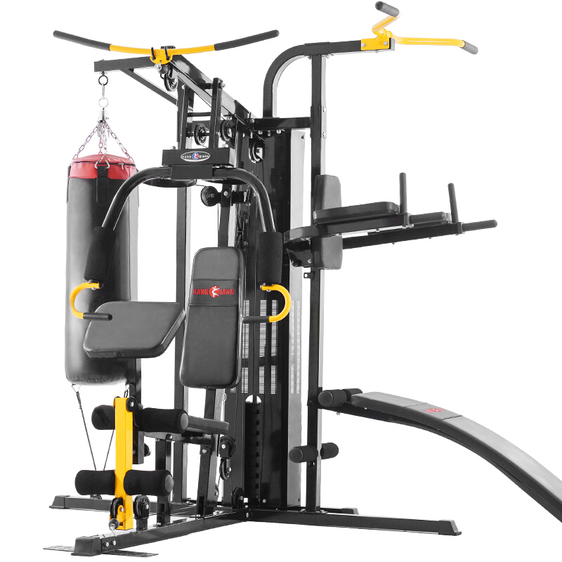 康強綜合訓練器G905X 9站位多功能健身房力量組合健身器材 G905X升級九合一訓練器,2021全新升級九站位多功能綜合訓練器,一臺器材=9臺專項訓練器,高位下拉/低拉/蝴蝶夾胸/坐式踢腿/雙杠提膝/推胸坐式蹬腿/腰部訓練/俯臥撐,精工打造,品質無憂,打造您的私人健身房,強大功能,滿足全身肌肉運動;專業訓練動作設計,針對每一塊肌肉進行訓練,拒絕運動妨礙,120°可折疊架,防止運動過程中掉落,整機重量/承重,櫓鐵,主要看重量,重量大才更穩。5檔推胸臂+3方位把位,N種訓練動作任您選擇,自由調節坐凳,蹬腿靠背4檔調節/夾胸坐墊4檔調節,重力滑輪組結構,專業力學滑輪組合,使有限配重達到雙倍效果,功能特點:推胸、高低拉、雙杠、蹬腿、曲腿、俯臥撐。可有效鍛煉胸大肌、背闊肌