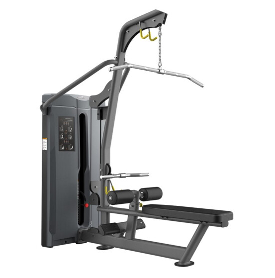 .坐穩以后雙腳腳尖向前,雙手握住橫桿,每只手的握距要比肩寬一個手掌左右,身體稍微向后傾斜。主要的動作就是將橫桿向下拉,拉到下巴處就可以了。向下拉的時候速度要快,而往回放時就放慢一些。向下拉橫桿時可以明顯感到背部的收緊感覺。